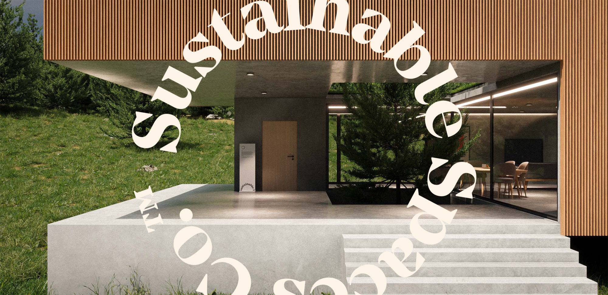 Branding, 3d, architecture, design Mai 2023 Ein Branding über ein Haus und die Zukunft des Wohnens. Sustainable Spaces Co. ist ein Konzept für ein Unternehmen welches sich auf nachhaltige Möbel und Räume spezialisiert hat. Im Zentrum ein Gebäude als Showroom, Drehort und Ferienhaus.